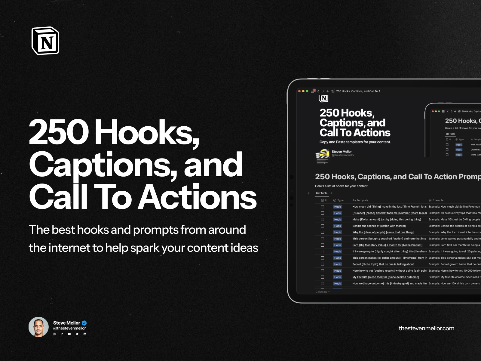 250+ Hooks, Captions, and Call To Actions that are copy and paste ready for your next viral post.